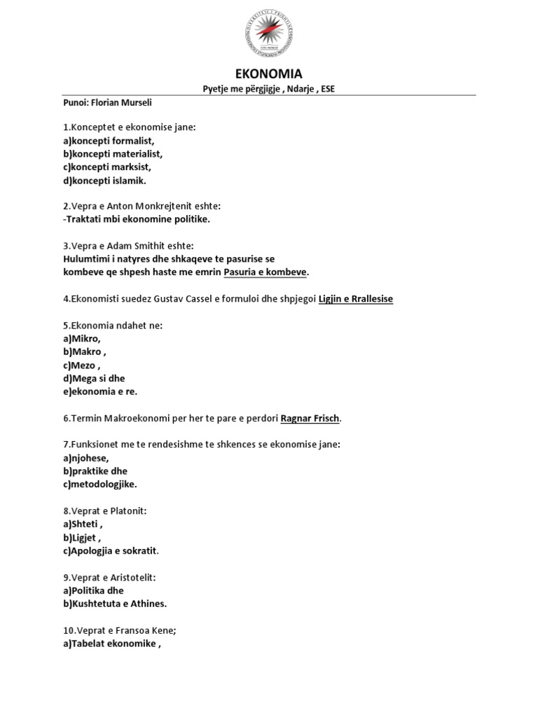 Ekonomia dhe Sistemi ekonomik 1Ekonomia kuptimi objekti degët dhe analiza ekonomike 2Sistemet e ndryshme ekonomike. Ku si organ e subjekt mund të jenë Seks të ndryshme organike në kuptimin biologjik dhe më gjerë. Çështë politika ekonomike e shtetit.